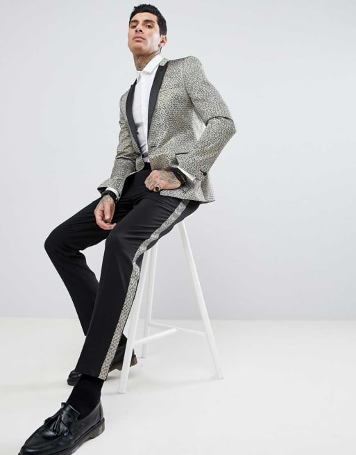 ASOS DESIGN - Smoking slim à effet nid d'abeilles avec revers noirs contrastants - Doré