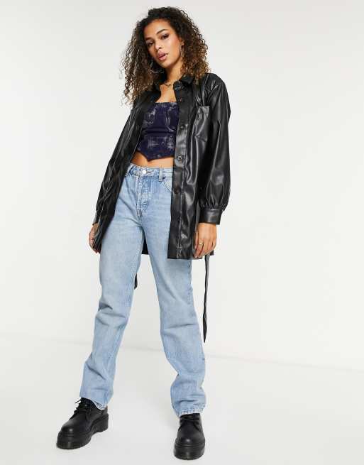 ASOS DESIGN - Surchemise de costume en similicuir avec ceinture - Noir