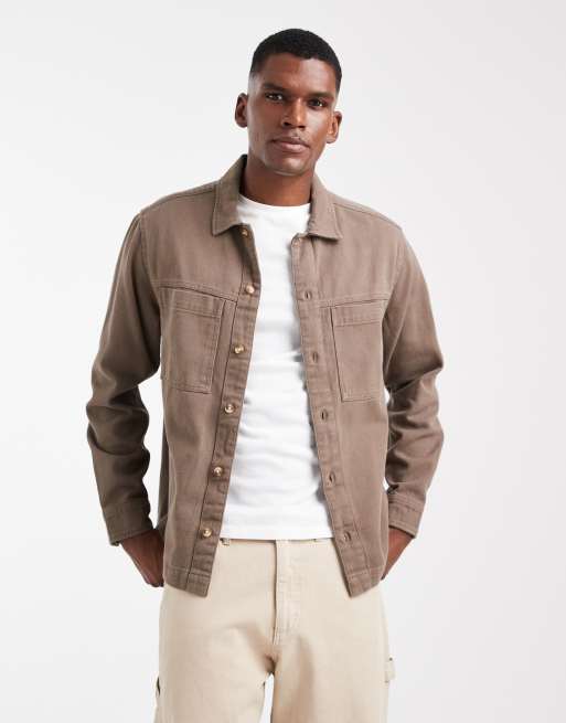 ASOS DESIGN - Surchemise en sergé de coton épais - Marron