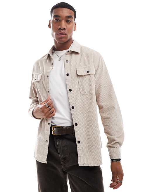 ASOS DESIGN - Surchemise en velours côtelé à boutons-pression - Taupe