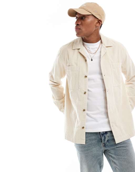 ASOS DESIGN - Surchemise en velours côtelé avec col à revers - Écru