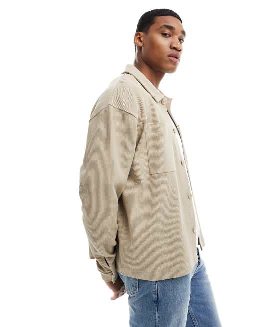ASOS DESIGN - Surchemise oversize côtelée - Beige