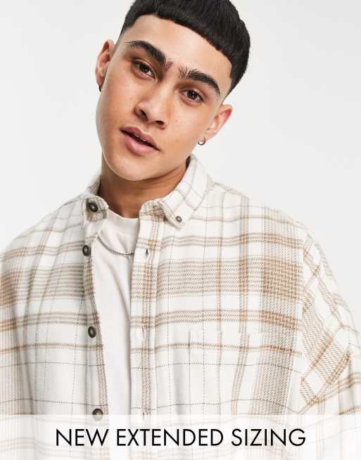 ASOS DESIGN - Surchemise oversize en flanelle à carreaux - Marron et écru