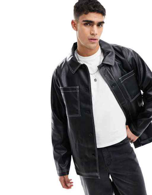 ASOS DESIGN - Surchemise oversize en similicuir à coutures contrastées - Noir