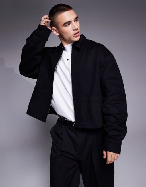 ASOS DESIGN - Surchemise style Harrington courte et oversize - Noir