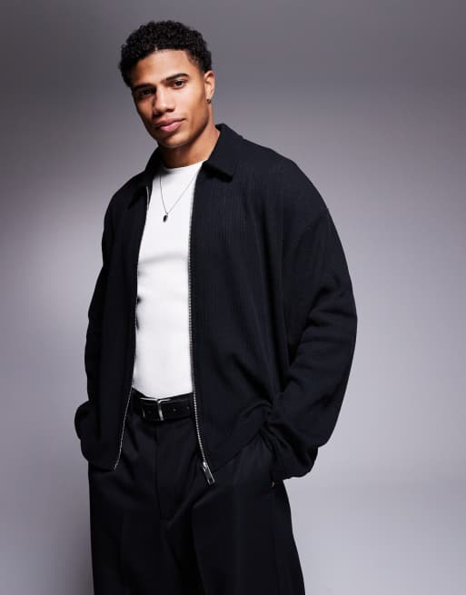ASOS DESIGN - Surchemise zippée oversize coupe carrée effet côtelé - Noir