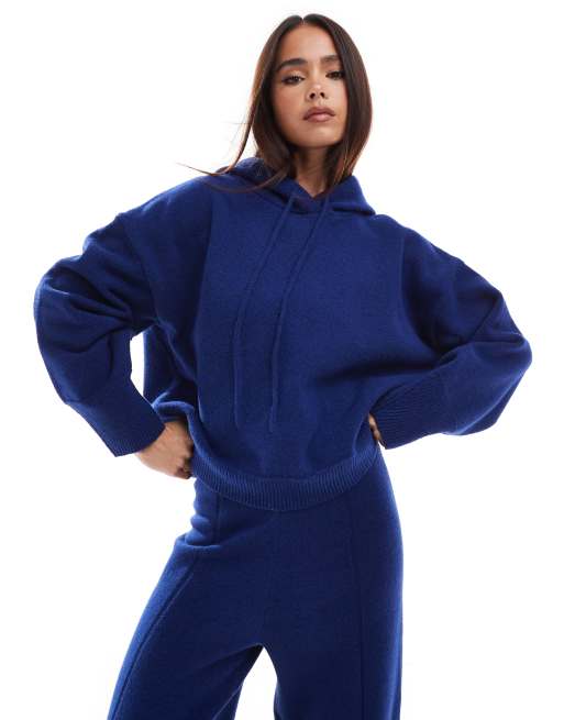 ASOS DESIGN - Sweat à capuche court d'ensemble en maille compacte - Bleu marine