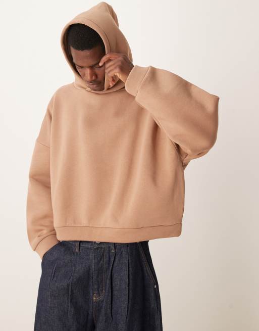 ASOS DESIGN - Sweat à capuche court ultra oversize en imitation peau de mouton - Beige