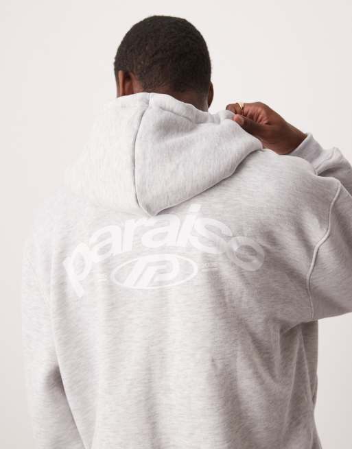 ASOS DESIGN - Sweat à capuche imprimé oversize à fermeture éclair - Gris chiné
