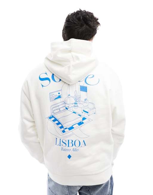 ASOS DESIGN - Sweat à capuche oversize à imprimé ville et grand imprimé au dos - Blanc cassé