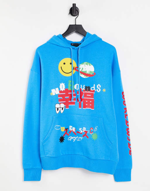ASOS DESIGN - Sweat à capuche oversize à imprimés style dessin animé multiples - Bleu vif