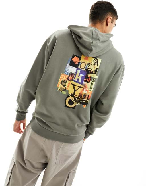 ASOS DESIGN - Sweat à capuche oversize avec imprimé style collage devant et au dos - Gris foncé