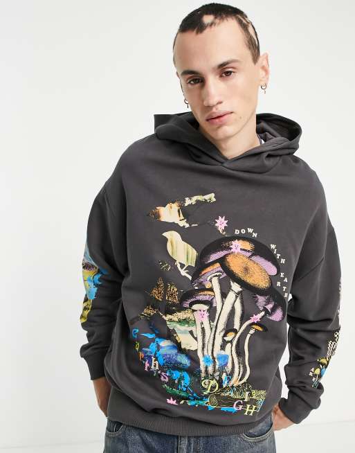 ASOS DESIGN - Sweat à capuche oversize avec imprimés plein air - Gris foncé