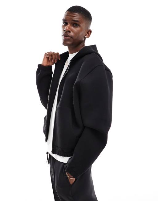ASOS DESIGN - Sweat à capuche oversize coupe carrée à fermeture éclair façon néoprène - Noir