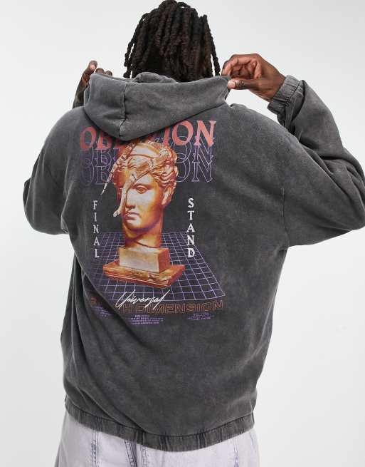 ASOS DESIGN - Sweat à capuche oversize effet tie-dye avec statue imprimée au dos