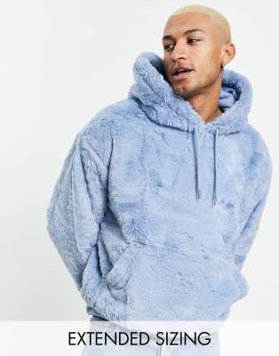 ASOS Design - Sweat à capuche oversize en fausse fourrure - Bleu pastel