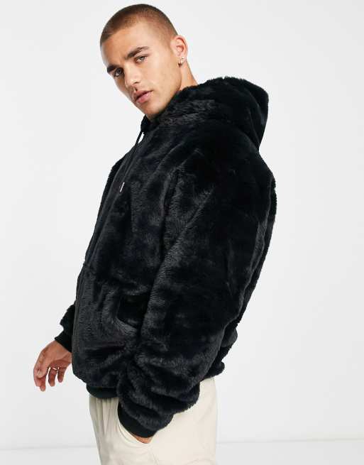 ASOS DESIGN - sweat à capuche oversize en fausse fourrure - Noir