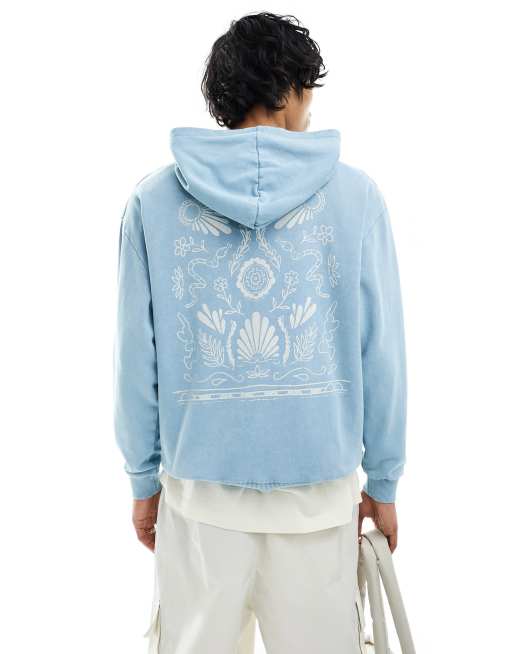 ASOS DESIGN - Sweat à capuche oversize unisexe avec imprimé à fleurs au dos - Bleu délavé