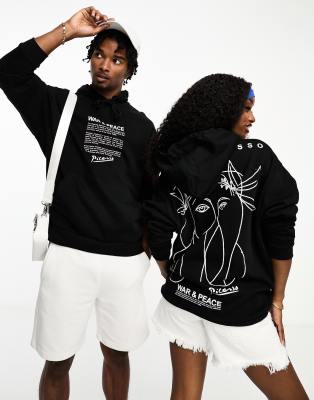 ASOS DESIGN - Sweat à capuche oversize unisexe avec motif dessiné de Picasso à la main sous licence - Noir