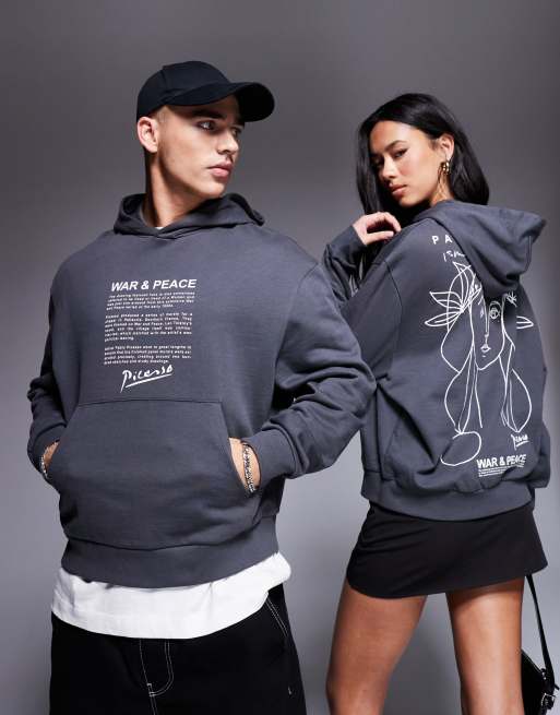 ASOS DESIGN - Sweat à capuche oversize unisexe coupe carrée avec motif dessiné de Picasso - Anthracite
