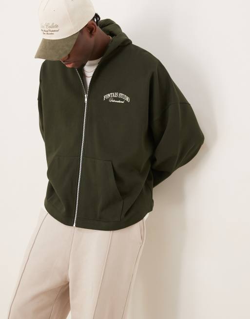 ASOS DESIGN - Sweat à capuche ultra oversize avec broderie sur la poitrine et à l'arrière - Vert foncé