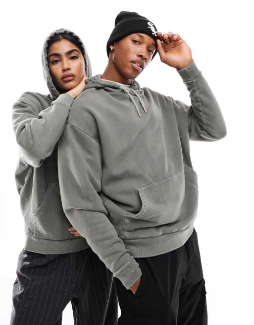 ASOS DESIGN - Sweat à capuche unisexe oversize - Gris surteint délavé