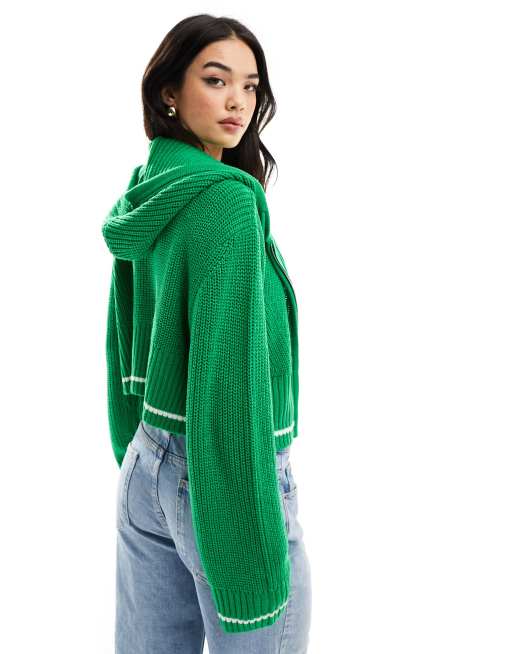 ASOS DESIGN - Sweat à capuche zippé avec liseré - Vert