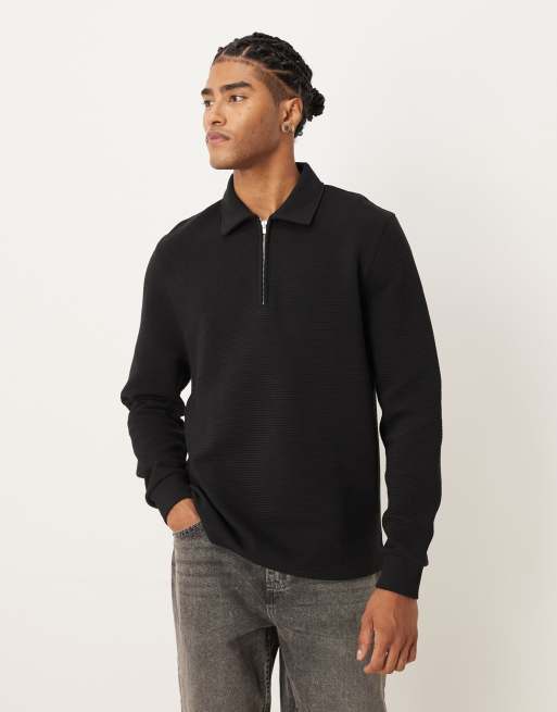 ASOS DESIGN - Sweat à col côtelé zippé - Noir