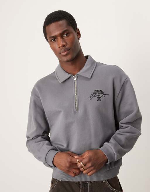 ASOS DESIGN - Sweat à col zippé coupe carrée avec broderie - Gris