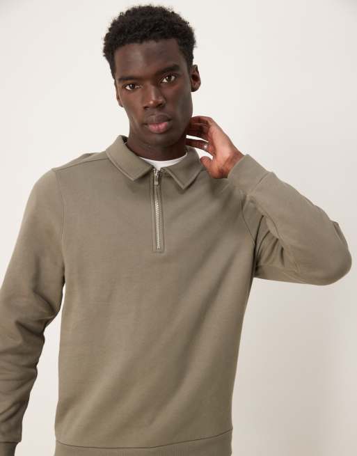 ASOS DESIGN - Sweat à col zippé - Kaki
