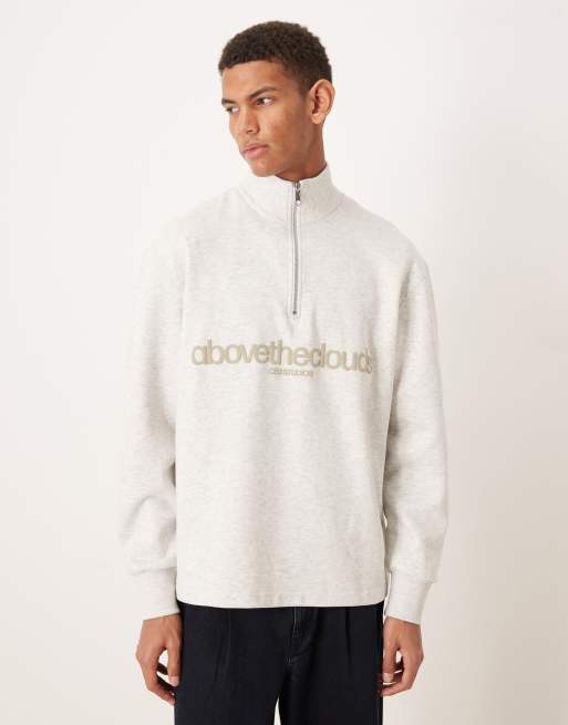 ASOS DESIGN - Sweat décontracté avec col zippé et imprimé ton sur ton effet bombé - Blanc chiné