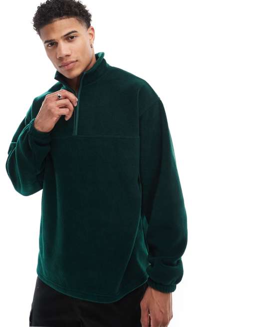 ASOS DESIGN - Sweat décontracté en polaire à col zippé - Vert foncé