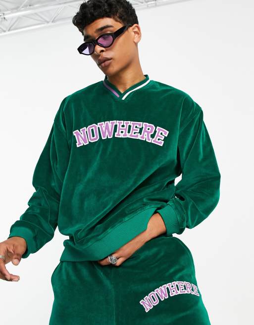 ASOS DESIGN - Sweat d'ensemble oversize à encolure en V avec imprimé universitaire en velours