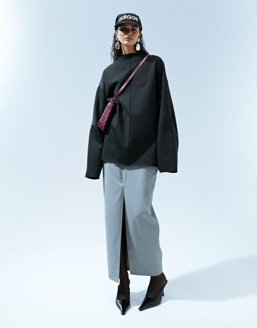 ASOS DESIGN - Sweat effet néoprène à manches longues amples et fentes latérales - Noir