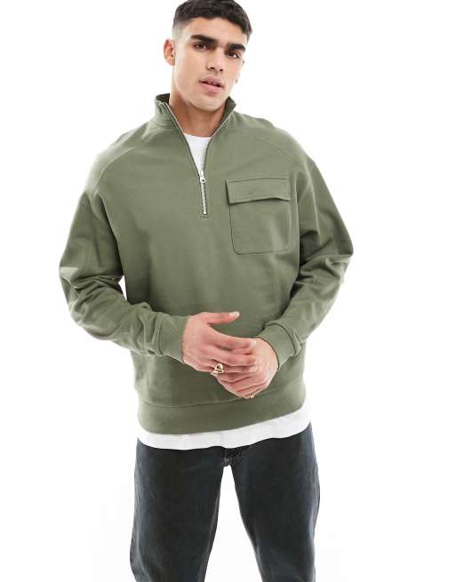 ASOS DESIGN - Sweat oversize à col cheminée zippé - Kaki