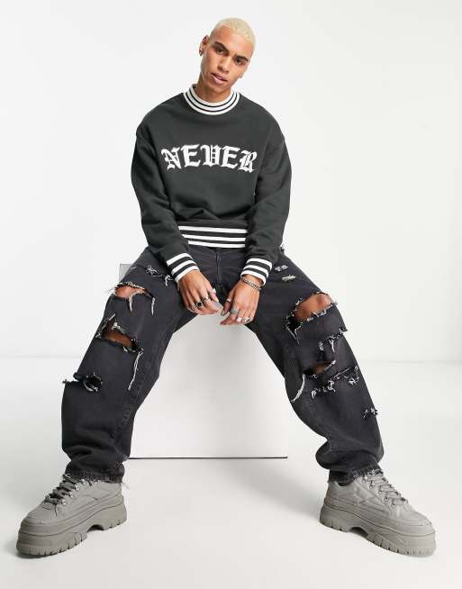 ASOS DESIGN - Sweat oversize à inscription gothique imprimée et bords contrastants - Noir