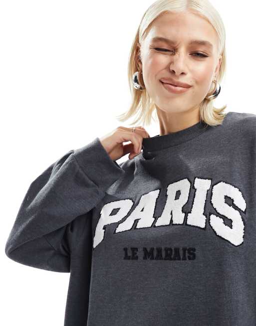 ASOS DESIGN - Sweat oversize à inscription « Paris » - Anthracite chiné