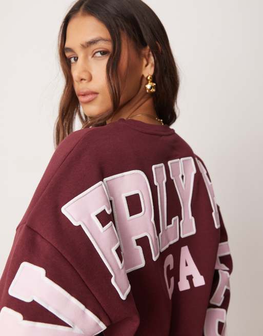ASOS DESIGN - Sweat oversize avec imprimé Beverly Hills au dos - Bordeaux