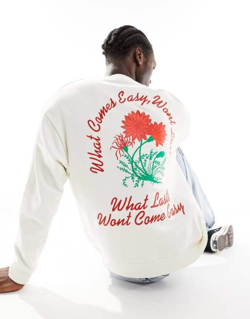 ASOS DESIGN - Sweat oversize avec imprimé fleurs au dos - Blanc cassé