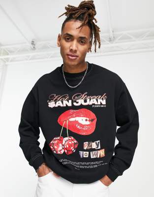 ASOS DESIGN - Sweat oversize avec imprimé photo lèvres devant et coutures contrastantes - Noir