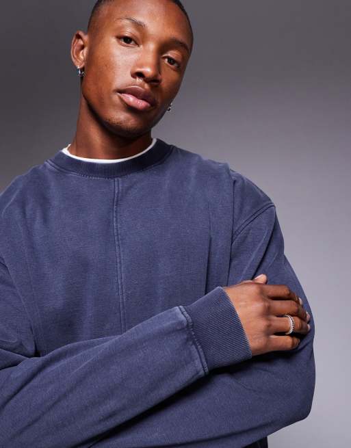 ASOS DESIGN - Sweat oversize d'ensemble effet coupé-cousu - Bleu marine délavé
