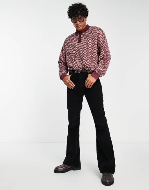 ASOS DESIGN - Sweat oversize en jacquard à col polo - Bordeaux