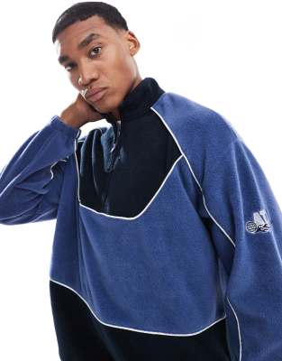 ASOS DESIGN - Sweat oversize en polaire à col cheminée zippé - Bleu