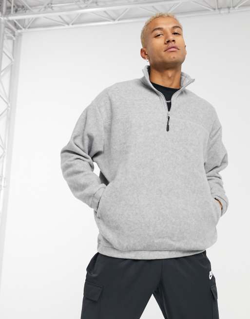 ASOS DESIGN - Sweat oversize en polaire à demi-fermeture éclair - Gris