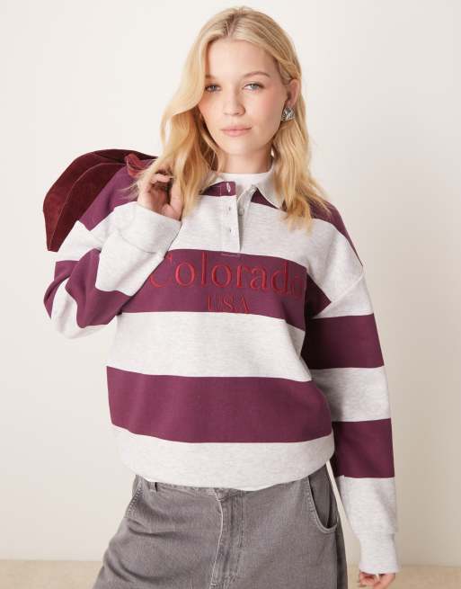 ASOS DESIGN - Sweat oversize style rugby avec broderie et rayures - Bordeaux