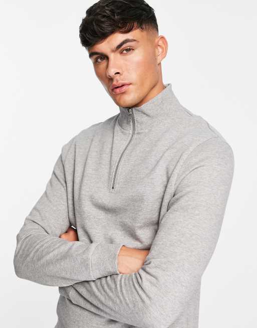ASOS DESIGN - Sweat-shirt à demi-fermeture éclair - Gris chiné