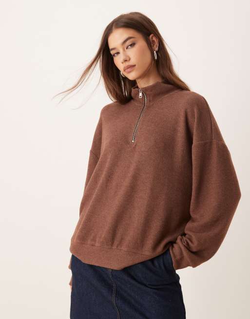 ASOS DESIGN - Sweat ultra doux oversize à col zippé - Chocolat