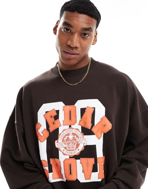 ASOS DESIGN - Sweat ultra oversize coupe carrée avec imprimé sur la poitrine - Marron