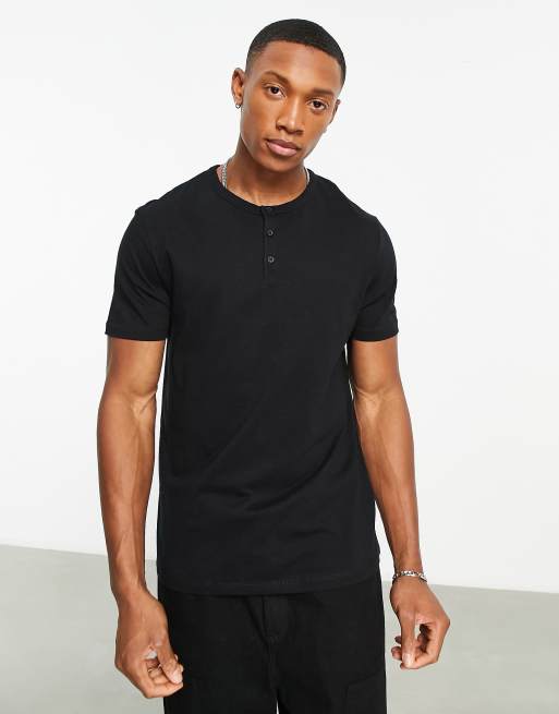 ASOS DESIGN - T-shirt à col grand-père - Noir