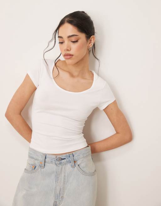 ASOS DESIGN - T-shirt à mancherons avec encolure dégagée - Blanc